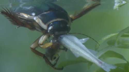 А якщо ви сховалися від спеки в річці чи місцевому озерці, там патрулює жук-плавунець. Розміром з фалангу, жере пуголовків, а з переляку може спробувати на зуб і вашу ногу. Найбільша дивина — ці водні хлопці вночі чудово літають. Тобто ти виходиш ввечері на ґанок, а воно плюхається з неба в діжку з дощовою водою. Універсальні солдати просто.