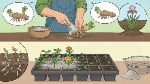 Корисно присипати золою зрізи м'ясистих кореневищ квіткових рослин при їх діленні, адже зола запобігає розвитку гнильних захворювань при зберіганні коренеплодів і посадкового матеріалу багаторічників. Вона також попереджає розвиток у ґрунті хвороботворних мікроорганізмів. Перед посівом насіння овочевих і квіткових культур на розсаду поверхню субстрату корисно припудрити просіяною через сито золою, щоб уберегти молоді сходи від чорної ніжки.
