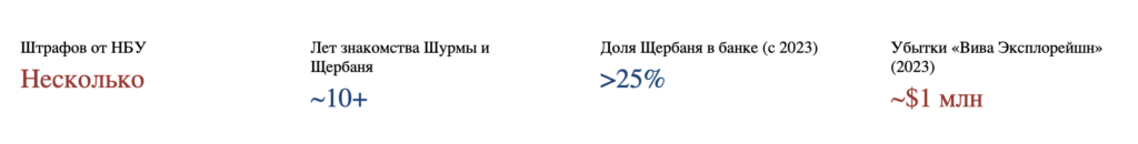 - «Вива Эксплорейшн» — газодобыча на Ивано-Франковщине (до 2033). Формально принадлежит Щербаню и Думенко. Хронические убытки (~$1 млн, 2023) заставляют аналитиков предполагать скрытого инвестора — предположительно Шурму.