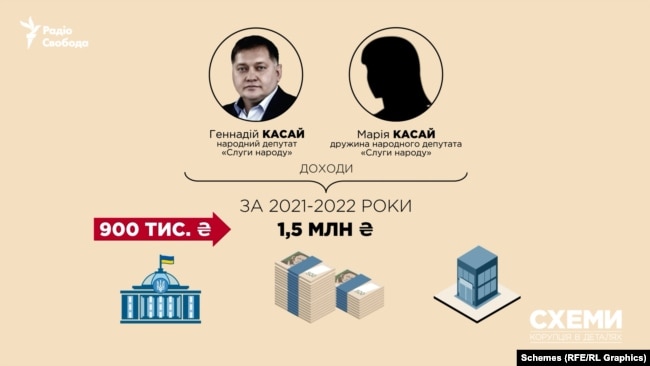 Донька та племінник народного депутата «Слуги народу» з оборонного комітету Геннадія Касая вже під час повномасштабної війни придбали елітну нерухомість у Дубаї на понад один мільйон доларів (близько 37 мільйонів гривень за курсом на момент купівлі). Це виявили журналісти «Схем» (проєкт Радіо Свобода).