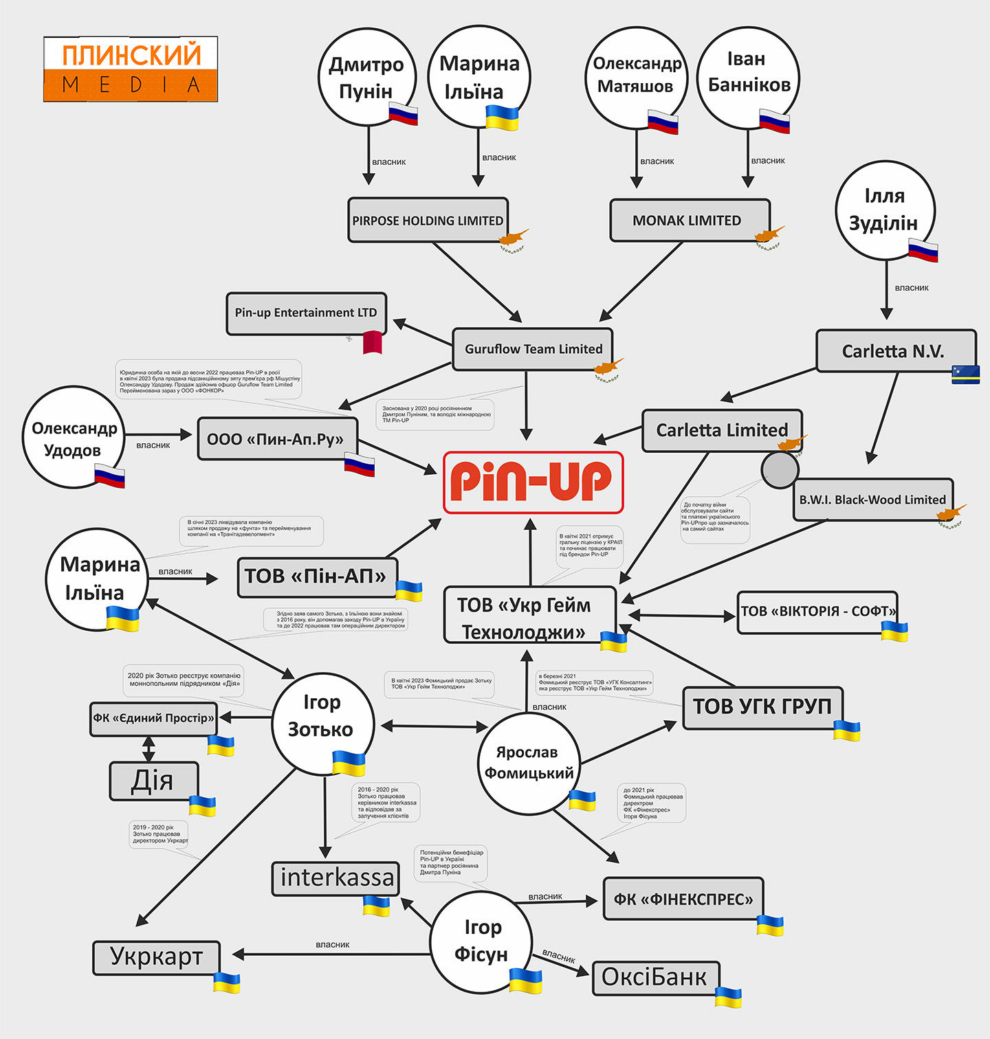 Известно, что Игорь Зотько также связан с финтех-инвестором Игорем Фисуном, и, скорее всего, смена владельца Пин-ап в Украине произошла лишь формально, как и вывод россиян из кипрских оффшоров.