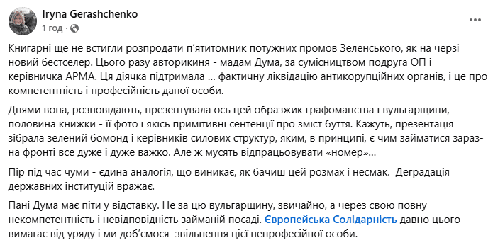 Другие народные депутаты также прокомментировали книгу Думы под заметкой Геращенко: