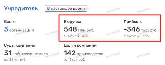 ООО «Санусвита» проработало без финансовых показателей с 2020 г. по 2023 г., принадлежало Роману Федорову, который был учредителем и руководителем нескольких уже ликвидированных компаний, имеющих признаки фиктивных организаций.
