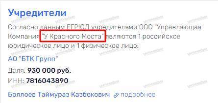Многие расследователи в своих материалах путали ООО «УК «Красный мост» с ООО «Управляющая Компания «У Красного Моста», принадлежащая АО «БТК Групп» Таймураза Баллоева, которого связывают с братьями Ковальчуками, близкими друзьями Владимира Путина.