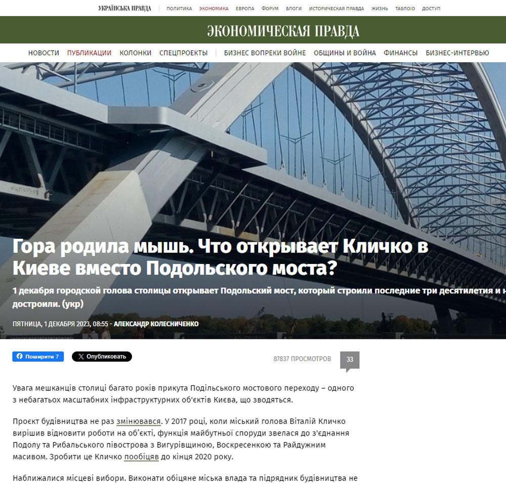 Тогда компания зашла в достройку Подольского мостового перехода между Троещиной и Подолом в качестве субподрядчика фирмы “Эко-строй-трейд”.