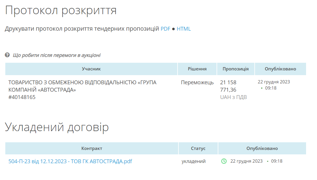 Невзирая на тот факт, что компания “Автострада” очень далека от строительства или проведения ремонтных работ в метро, КП “Киевский метрополитен” 12 декабря заключило соглашение стоимостью 21,16 млн грн с ООО “Группа компаний “Автострада” на проектирование и подготовительные работы по ремонту тоннеля между станциями “Демеевская” и “Лыбедская”, о чем появилась запись в системе “Прозорро”.
