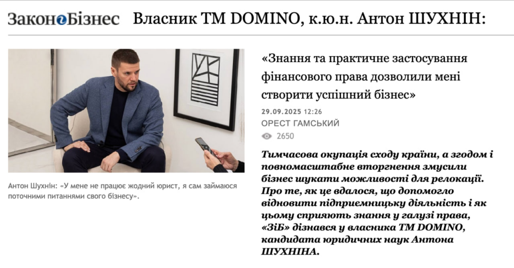 Власник бренду Domino Антон Шухнін має адвокатське свідоцтво №3951 від 08.06.2011 (Донецька обласна КДКА), але жодної адвокатської діяльності не веде — пряме порушення закону «Про адвокатуру», що тягне позбавлення статусу.