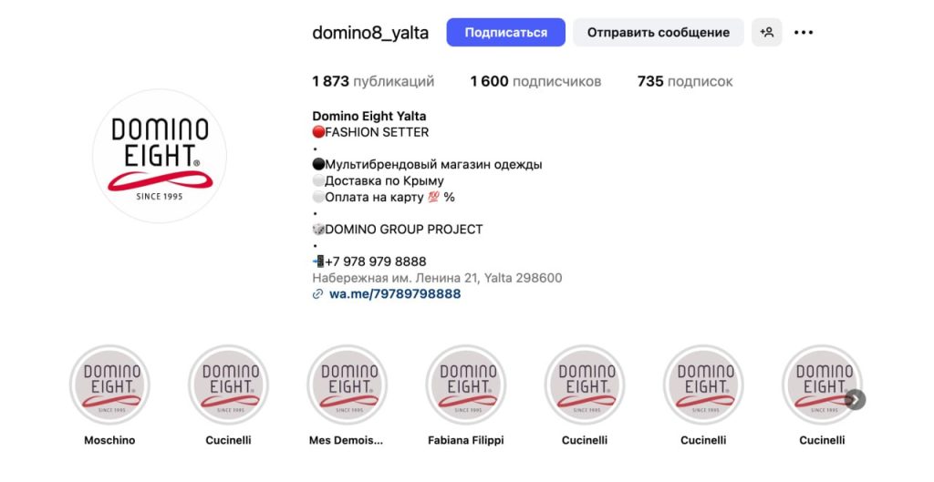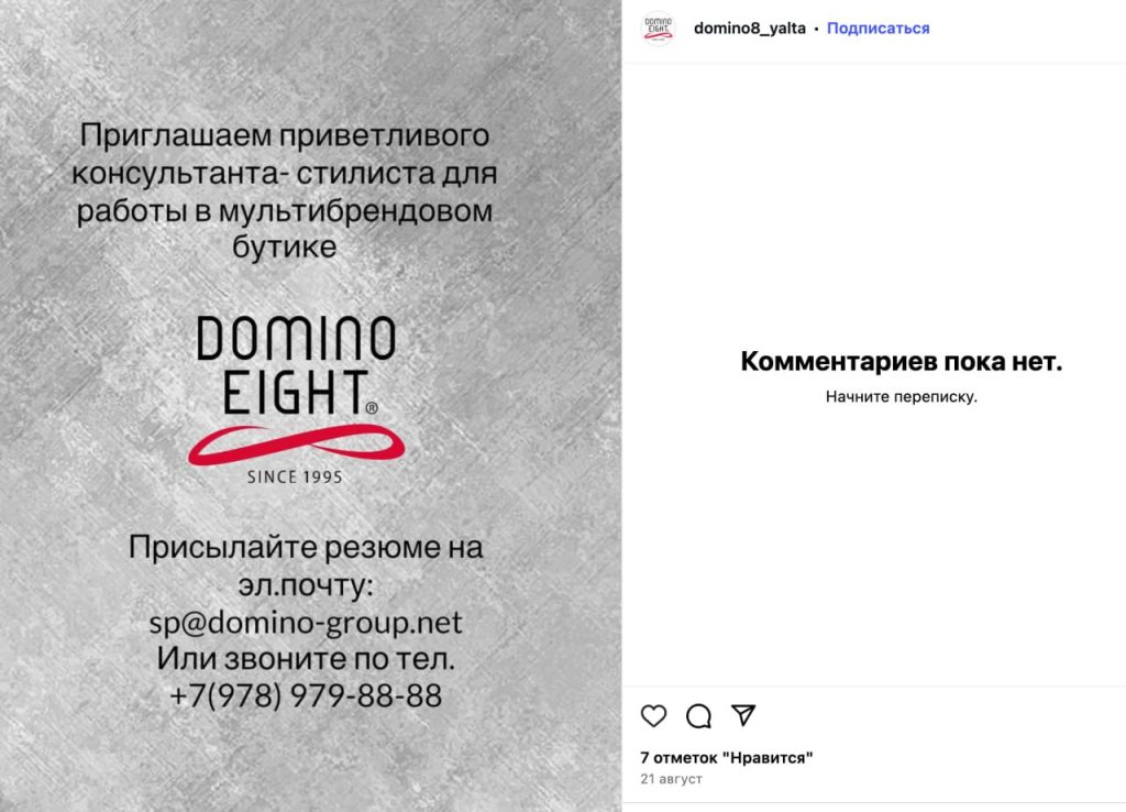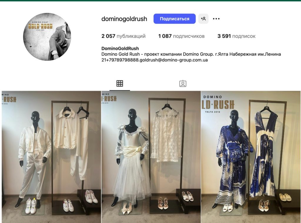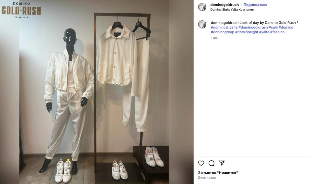 У Ялті з 2014 року функціонує магазин Domino Eight Yalta / Domino Gold Rush (набережна ім. леніна, 21), який прямо вказує на приналежність до Domino Group. У серпні 2025 року бутік активізував діяльність і почав пошук нових співробітників. Як туди потрапляють підсанкційні товари — невідомо.