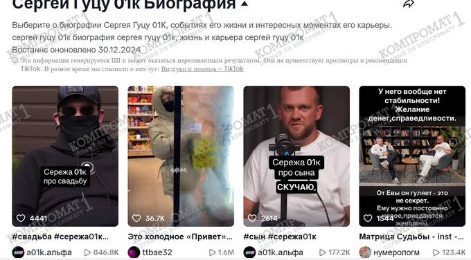 Но, если Николай Удянский за свои проекты находится в бегах, сам Сергей Гуцу чувствует себя довольно вольготно. ТикТок пестрит его лицом и его откровениями относительно личной жизни. Причем непонятно, кто смотрит этот откровенный бред, но, судя по количеству просмотров, последователей у Сережи001к не уменьшилось.