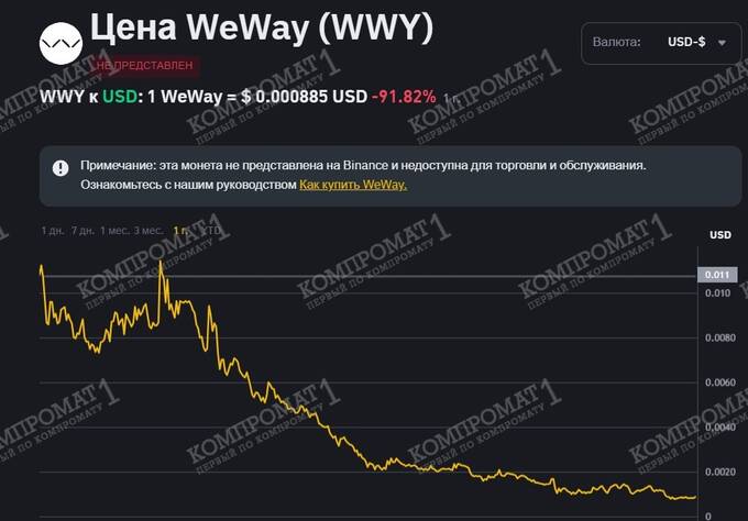 Следующим откровенным навозом, который продвигал Сергей Гуцу, был WeWay (WWY). Потом был такой же «перспективный» проект TIME. Результат, как вы уже догадываетесь, был предсказуем. К тому же уважающие себя биржи этими «токенами» не торгуют. Делайте выводы сами.
