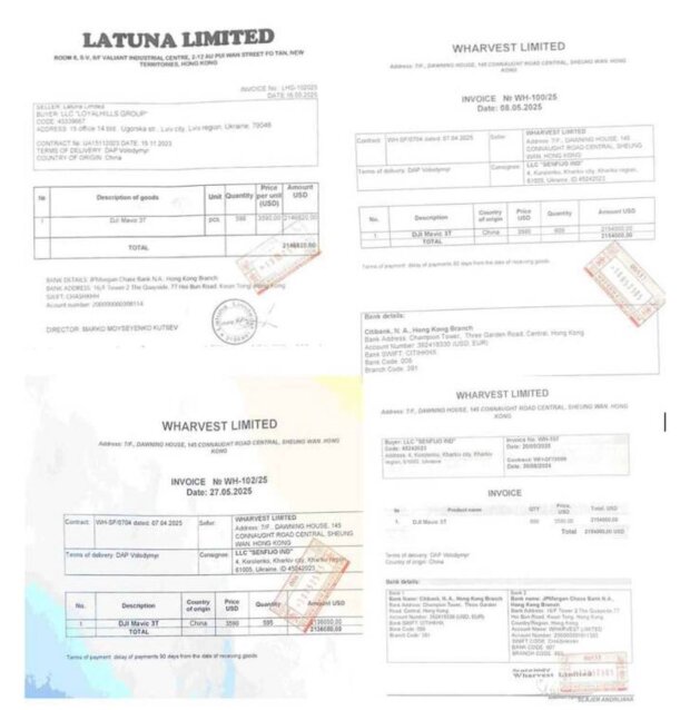 Майже у всіх інвойсах вказуються партії дронів по 600 штук