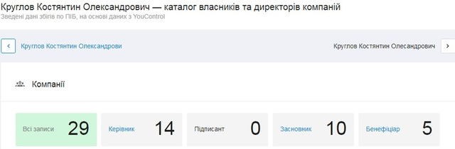 Что же, придется заглянуть в государственные реестры. Попутно выясняется, что Константин Круглов весьма многосторонняя личность – он имеет отношение к 29 разнообразным организациям:
