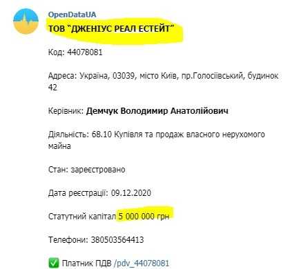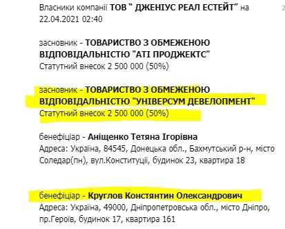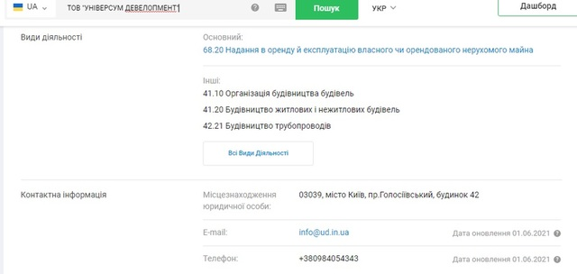 И занимается это ООО сдачей в аренду имущества. Правда, связь с финансовым холдингом Universum все же есть – оно имеет тот же адрес: Голосеевский проспект, 42.