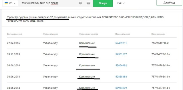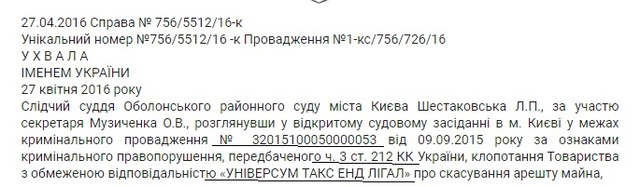 Ели покопаться в этих решениях, то окажется, что ООО «Универсум такс энд лигал» является фигурантом уголовного производства № 32015100050000053. И открыто оно было по статье 212 УК Украины: «Умышленное уклонение от уплаты налогов»: