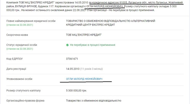 Зарегистрировано ООО «Альтернативный кредитный центр «Экспресс-кредит» в оккупированном Луганске:
