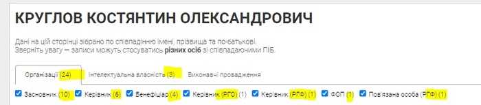 Согласно информационному реестру Clarity-Project, количество организаций, связанных с Кругловым, составляет 24. Примечательно, что из них 10 он основал сам.