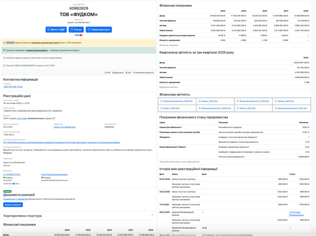 Фінансові документи свідчать, що ТОВ «Фудком» системно закуповувало інгредієнти у ТОВ «Пуратос Україна». На рівні ринку це може виглядати як звична господарська співпраця. Але в нинішньому контексті така співпраця сприймається інакше.