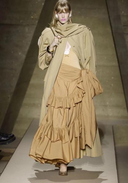Найбільший тренд, що увірветься у 2026 рік – пишність та виразність. Цікаві фасони, що вражають своєю неординарністю підкорять прийдешній сезон. Найбільшим проявом тренду стануть довгі та обʼємні спідниці. Важливо, що об’ємність має бути зосереджена саме внизу, а верх має бути мінімалістичним та лаконічним.