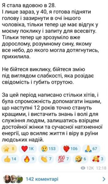 Раніше селебритіс неодноразово зазначала, що шлях до усвідомлення того, що вона готова будувати нове кохання був дуже тяжким. Після смерті її чоловіка Євгена Огіра, Тіна наголошувала, що перш за все сконцентрована на вихованні спільного сина Веніаміна та кар’єрі.