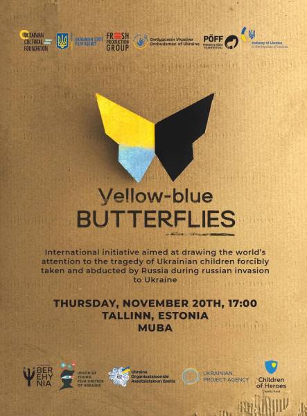 У Таллінні відбудеться прем’єра фільму «Жовто-блакитні метелики» 17.11.2025 12:11 Укрінформ У Таллінні в рамках програми Standing with Ukraine відбудеться захід «Жовто-блакитні метелики», присвячений дітям України, під час якого покажуть фільм з однойменною назвою.
