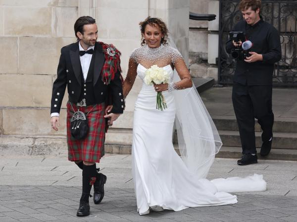 5. Мел Бі та Рорі Макфі 50-річна співачка Мел Бі з гурту Spice Girls вийшла заміж за 37-річного стиліста Рорі Макфі. Весілля відбулося в центрі Лондона, а вінчання у соборі Святого Павла. Це вже третій шлюб артистки.