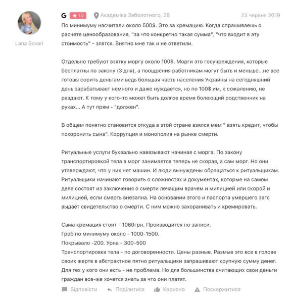 УНН також вдалося знайти розповіді й про інші історії, повʼязані з похоронним домом “Анубіс”, з яких стає очевидно, що ритуальна служба “співпрацює” й з іншими лікарнями.