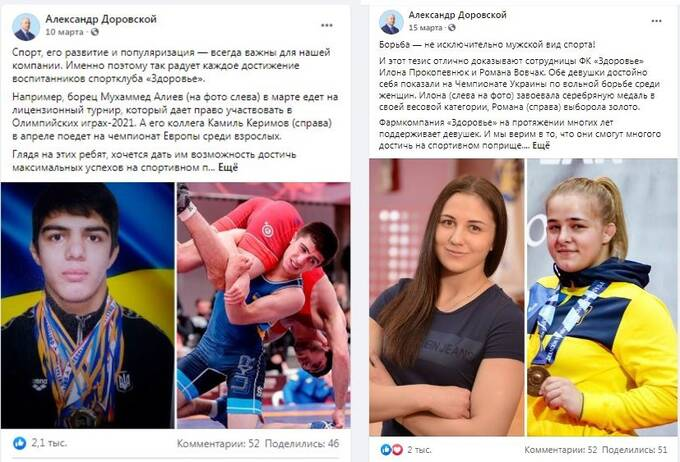 А также делал несколько постов-поздравлений с победами украинских спортсменов, которые так или иначе связаны с брендом «Здоровье».