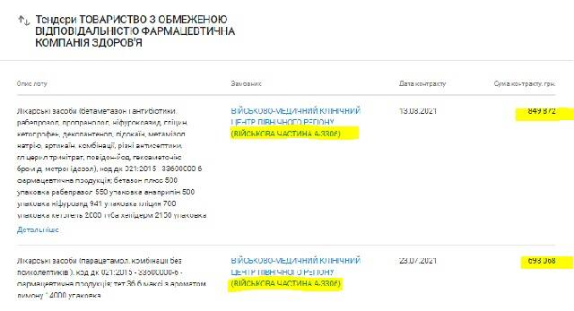Согласно информации сайта Clarity-project, данная компания является участником тендерах на 58 закупках на госресурсе Prozorro. Победило предприятие в 38 тендерах на общую сумму 30,77 миллиона гривен. Также ООО «Фармацевтическая компания «Здоровье» подписало 345 договоров на общую сумму 27,68 миллиона. Помимо этого на данного участника торгов имеются 2 жалобы.