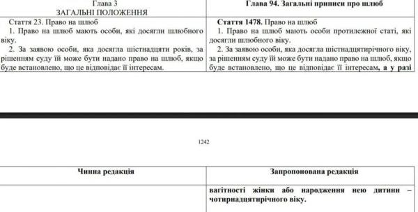 Зрештою, як підсумовує адвокат, чинний Сімейний кодекс має майже аналогічну норму, тільки вік там обмежується 16 роками. А з 2003 по 2012 взагалі діяла норма, де вік був такий, як у запропонованій редакції – 14 років і навіть без умови про вагітність чи народження дитини.