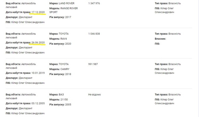 Доступна декларация уже за 2019 год, которую Кипер подал в мае 2020-го, уже в качестве работника Генпрокуратуры, в статусе коего его восстановил суд. Ну и последующая – за 2020-й, когда Олег Александрович уже возглавлял прокуратуру столицы.