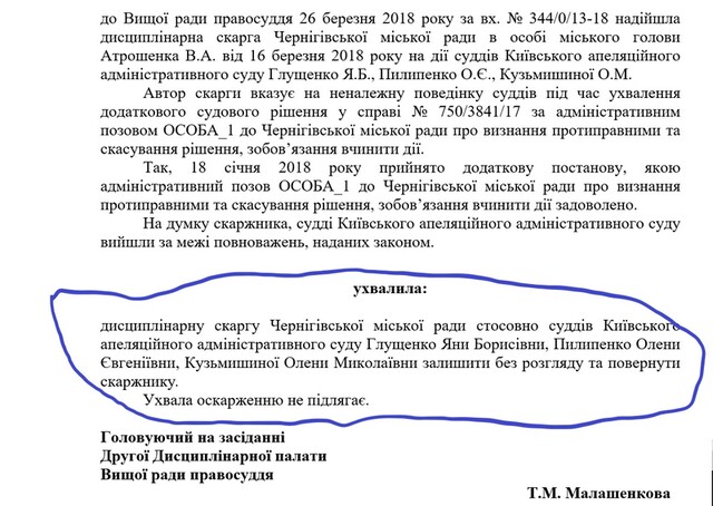 Есть и еще один намек на причину, почему Елену Кузьмишину никто не трогал. Она послушно исполняла указания власти. Причем – всегда, кто бы этой властью ни был. Вот цитата из решения Высшего совета правосудия по жалобе представителей Черниговского городского совета на действия судьи Кузьмишиной: