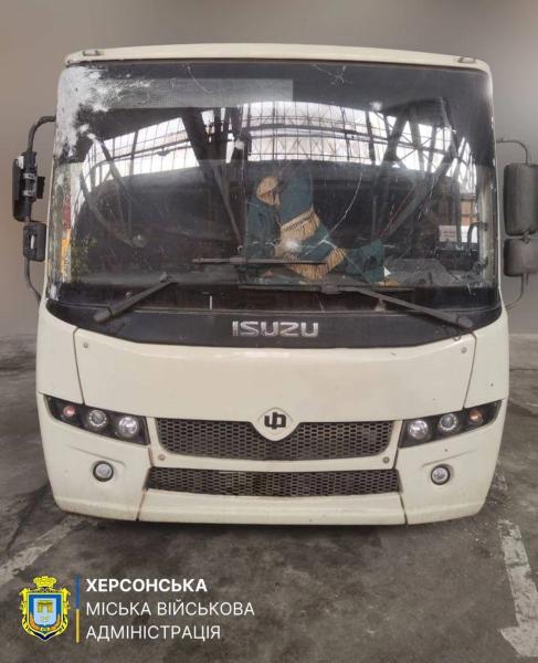 6 лютого о 11:00 російські окупанти скинули вибухівку з дрона на пасажирський автобус у Херсоні. 39-річний водій отримав мінно-вибухову травму.