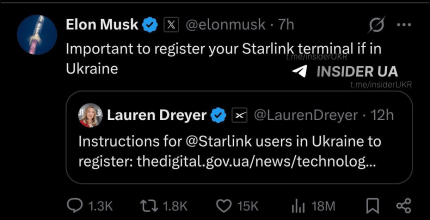 Ілон Маск написав у соцмережі Х, що "важливо зареєструвати термінал Starlink, якщо ви перебуваєте в Україні".