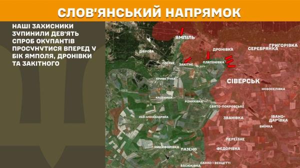 Також ворог виявляв активність на Костянтинівському напрямку, провівши 14 атак, та на Слов’янському, де було зупинено 9 спроб просування в бік Ямполя та Закітного.