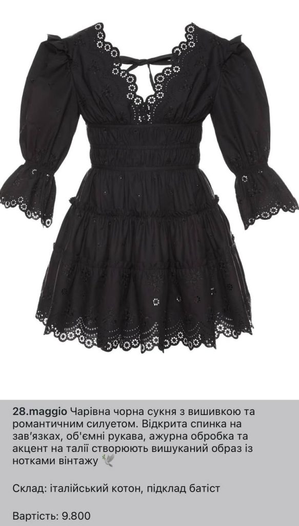 Тобто одна сукня бренду Лагуніної коштує більше, ніж мінімальна зарплата в Україні. Вочевидь, одяг від 28 MAGGIO можуть дозволити собі тільки дружини посадовців.