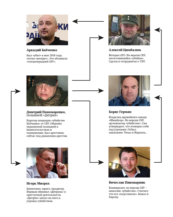 Герман нашел ветерана АТО АлексеяЦымбалюка. Цымбалюк должен был застрелить Бабченко, но сдался СБУ, которая разыграла дальнейшее представление.