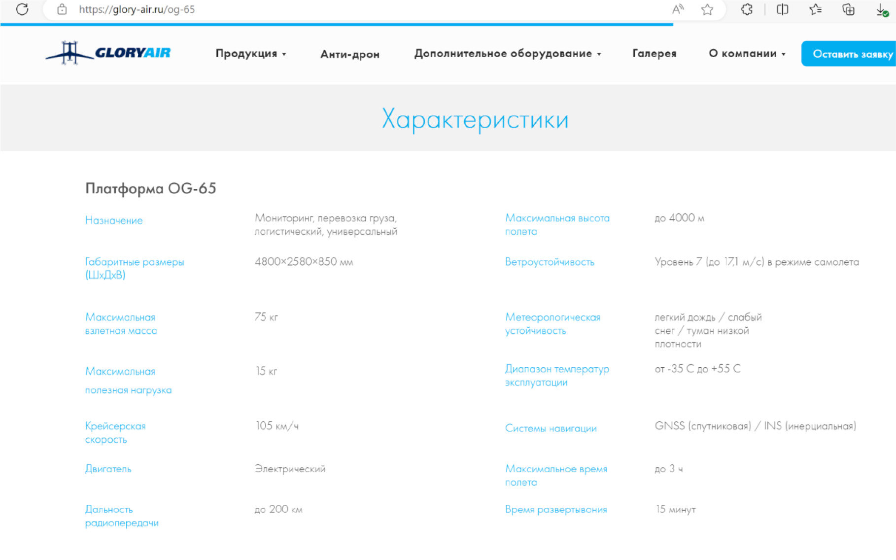За даними INTERFAX.RU, саме GloryAir отримала офіційний сертифікат льотної придатності на використання БПЛА OG-65 у Російській Федерації. За GloryAir стоїть Олександр Путін, троюрідний брат Володимира Путіна, який має багаторічні бізнес-зв’язки з оборонними підприємствами РФ.