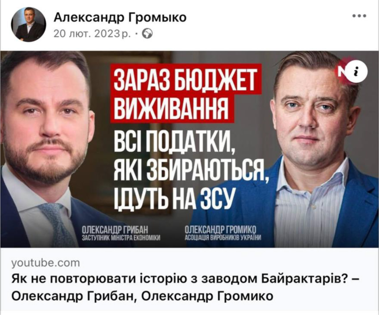 31 липня 2023 року сам Олександр Громико публікує допис, у якому обурюється «двохходовими схемами обходу санкцій». Пише про те, що Захід «не додумав» запровадити вторинні санкції проти країн, які допомагають Росії обходити обмеження. І саме в цей момент його компанії реалізують схему поставок товарів подвійного призначення через Чехію, підміною кодів, завищенням цін і подальшим виведенням коштів за кордон. І все це — через структури, які, за іронією, і є тими самими «прокладками», в різних країнах, про які він пише.