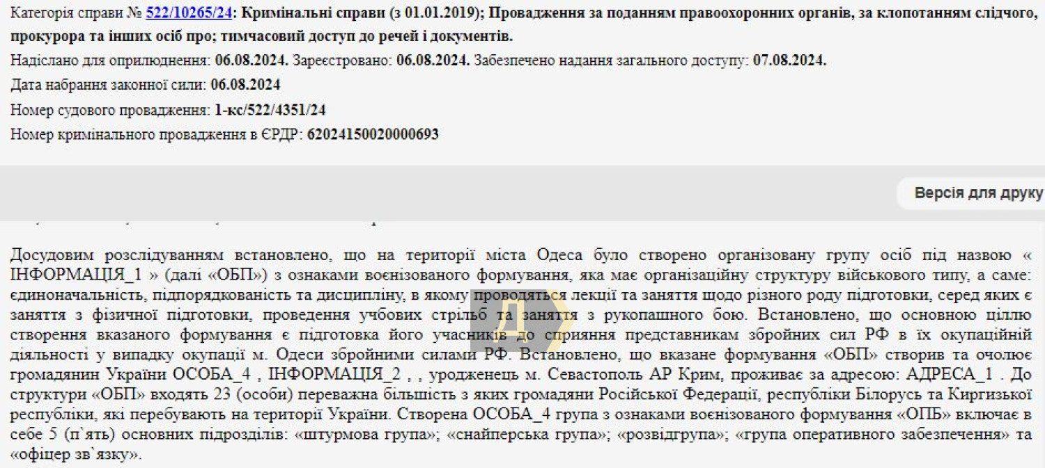 Еще следствие выяснило, что Олег Мальцев создал полноценное диверсионное подразделение из 23 человек, в составе которой была штурмовая, снайперская, разведывательная группы, группа оперативного обеспечения и даже офицер связи. Почти половина личного состава — иностранцы из россии, Киргизии и Беларуси. У всех были позывные. Даже после начала полномасштабной войны личный диверсионно-разведывательный взвод Мальцева регулярно выезжал на полигон и стрельбища, где отрабатывал тактические действия в условиях городского боя.