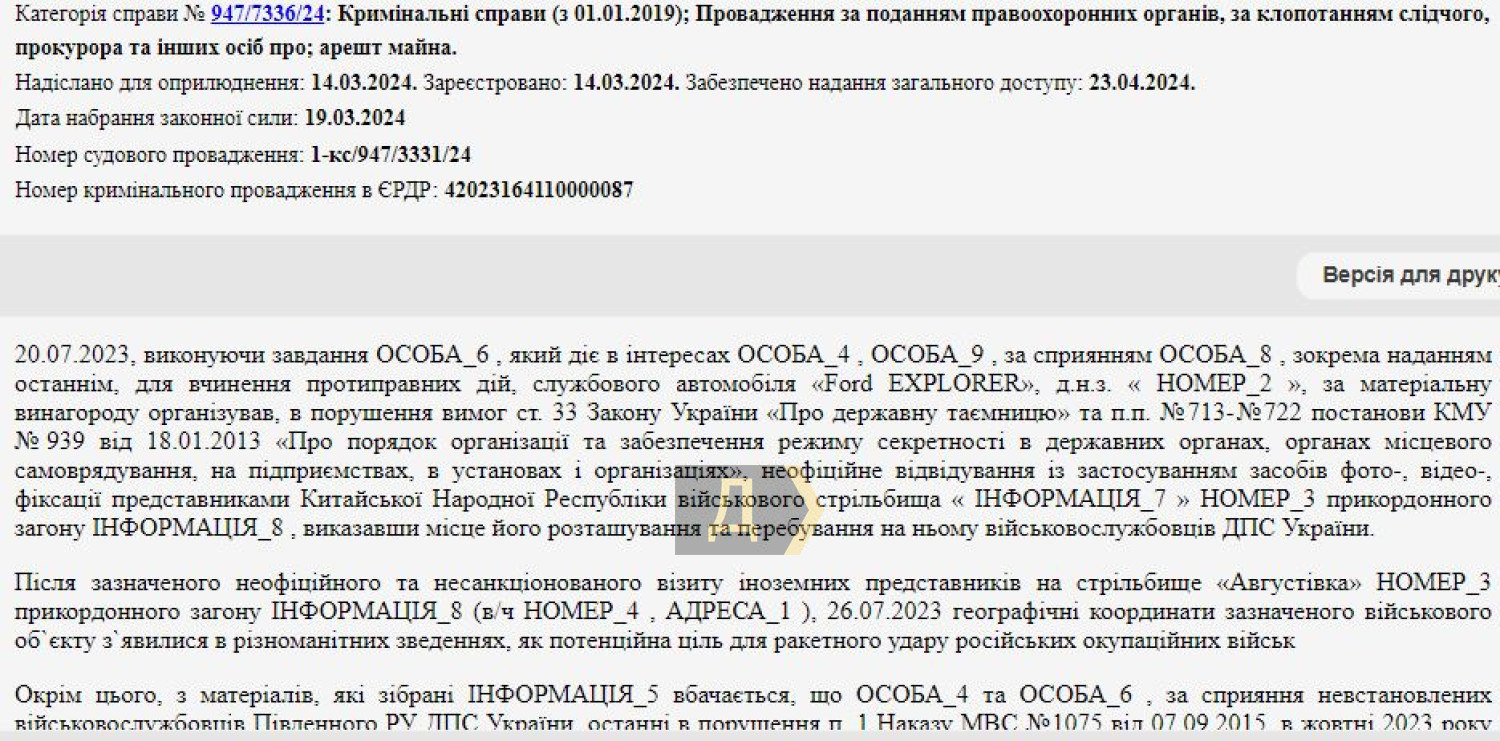 Еще при содействии пограничников Слободянюк незаконно запустил дрон над госграницей Украины с Приднестровьем в районе Кучургана, фиксируя систему погранзастав и укрепления. По версии следствия, для передачи этой информации диверсионным группам непризнанной приднестровской «республики».