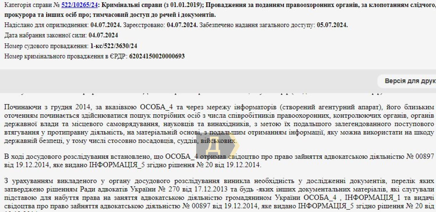 Заинтересовала следствие и адвокатская деятельность Олега Мальцева – в судебных документах «Думская» нашла решение о проверке оснований, по которым мужчина получил лицензию.