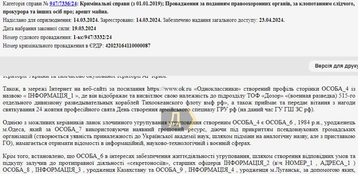 Как зафиксировали сотрудники СБУ, Константин Слободянюк покупал конфиденциальную информацию на интересовавших Мальцева людей у офицеров Госпогранслужбы и полиции. В числе подкупленных сектой – старший офицер, старший оперуполномоченный отдела активных мероприятий управления оперативно-розыскной деятельности Одесского погранотряда. Список лиц, интересовавших руководителя секты, включает 70 человек, в основном это предприниматели, украинские военнослужащие, полицейские и судья Суворовского суда Одессы.